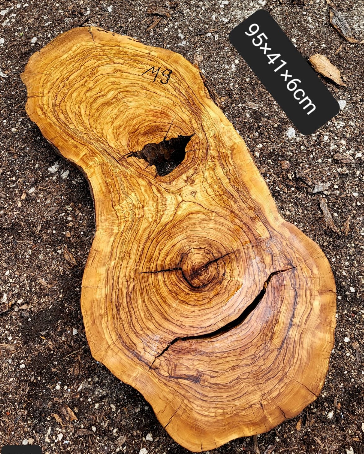 Wunderschöne Baumscheibe aus Olivenholz, unbehandelt. Ideale Ausgangsbasis für ein selbstgemachtes Schneidbrett oder ein Beistelltisch.